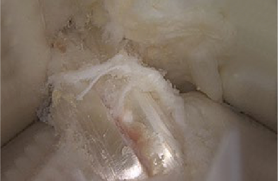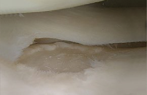 Bild 2: Knorpelschaden nach der Implantation der Membran